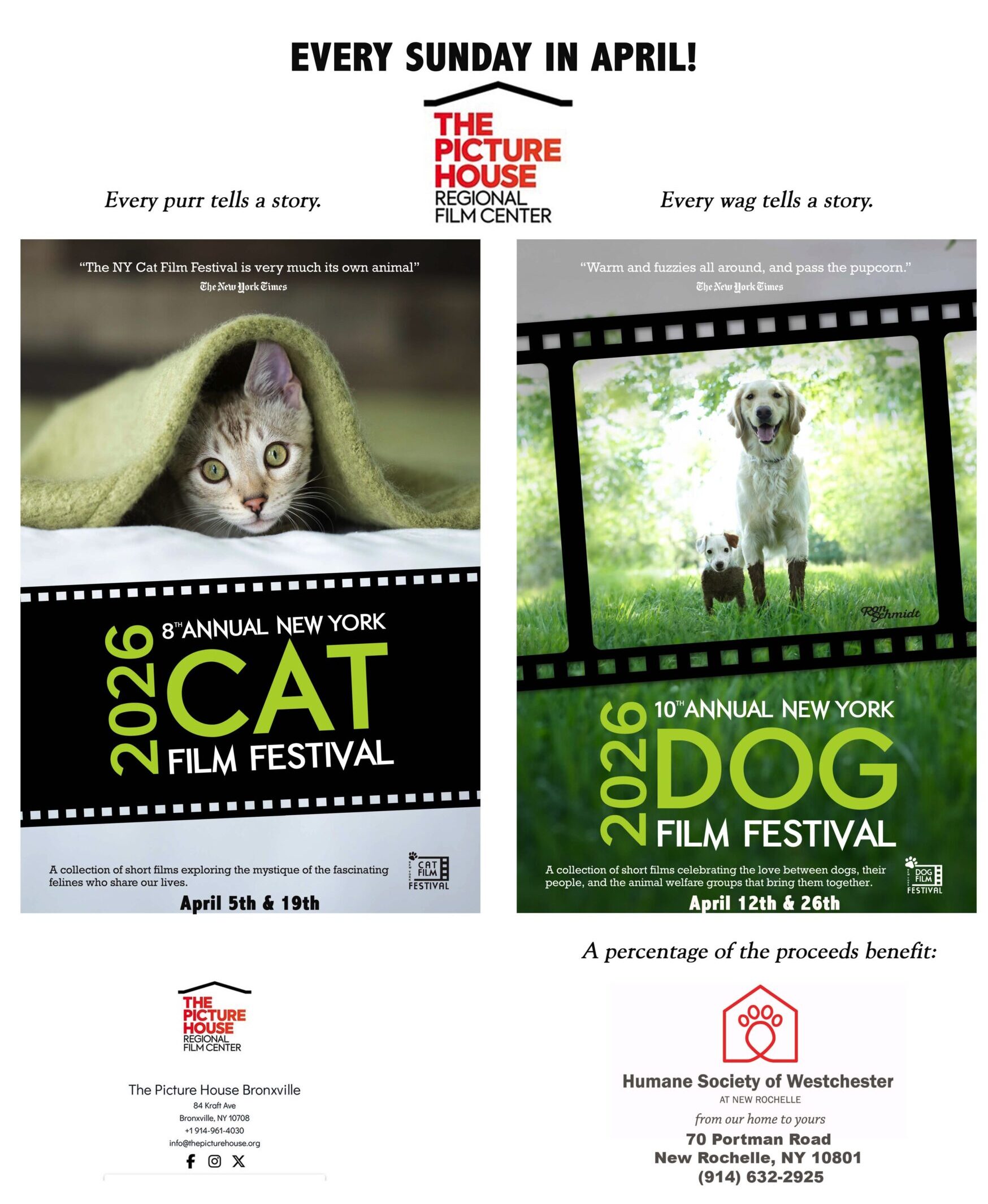 Please mark your calendars for the final showings of two purr-fect and tail-wagging events at The Picture House in Bronxville: